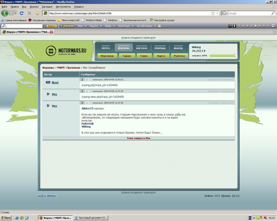 Нарушение непрописаных в игре правил Модератором Vinc (2009-04-05 16:15:32)
